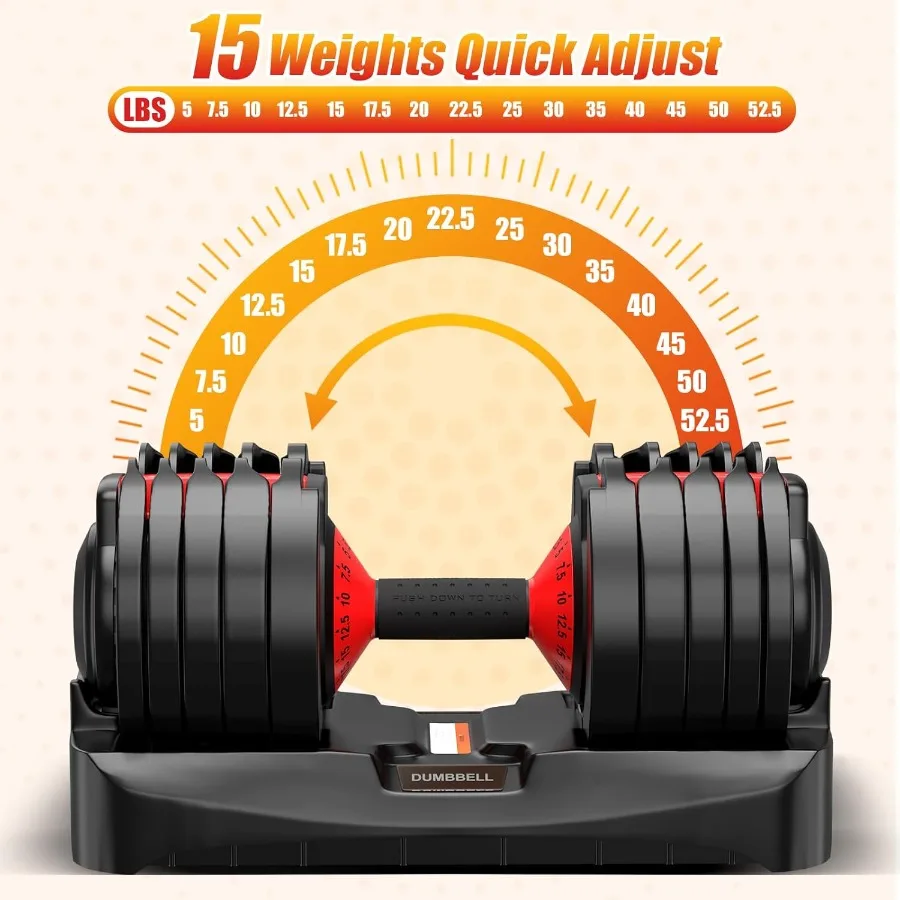Adjustable Dumbbell Set: Fully adjustable with 15 weight settings
