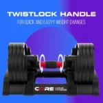 Quick-change weight adjustments with Twist Lock technology, allows you to change weight setting with one hand. Set dumbbell in cradle, twist the handle and weight changes quickly and safely